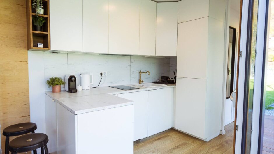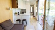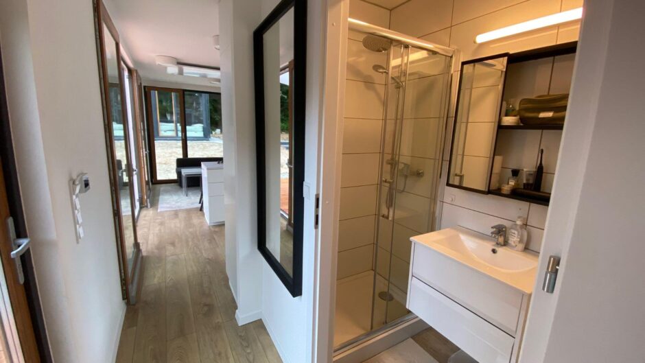 MOMO Luna wird bezugsfertig geliefert und verfügt über ein umfassendes Badezimmer, eine optionale Küche und ein separates Schlafzimmer ausgestattet mit Belüftung, Klimaanlage mit Heizfunktion, einem Warmwasserbereiter und Infrarot-Deckenheizpaneelen. Sobald es vor Ort ist, steht es sofort zum Einzug bereit.