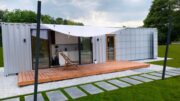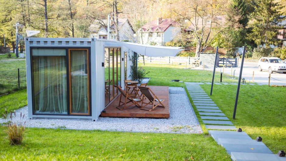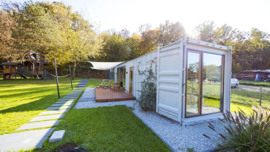 MOMO Luna, gefertigt aus einem makellosen 40-Fuß-Container, eignet sich für ganzjähriges Wohnen und entspricht modernen Baustandards. Seine elegante hellgraue Fassade, betont durch eine üppige begrünte Wand, verleiht ihm einen besonderen und stilvollen Charme. Großzügige Fenster sorgen dafür, dass der Raum von natürlichem Licht durchflutet wird.